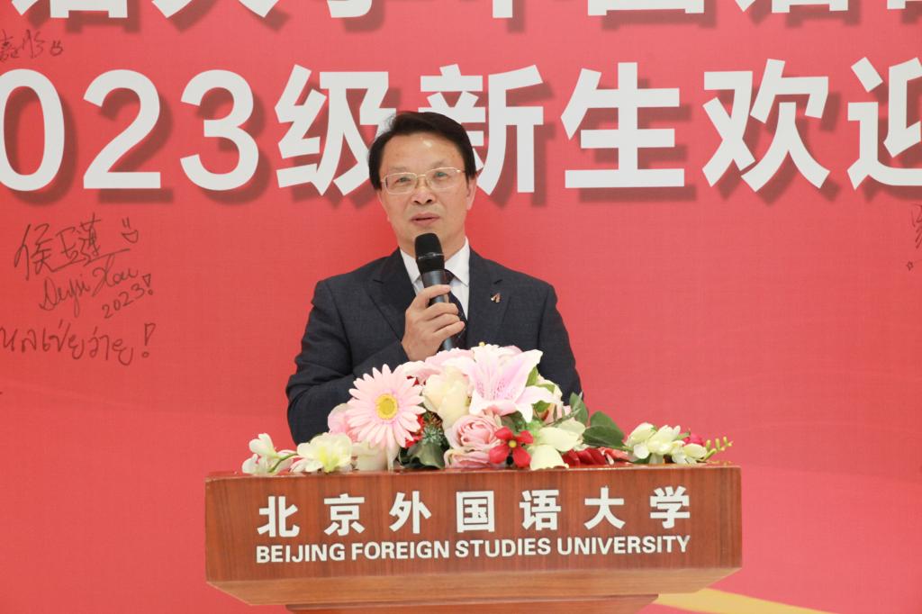 大会最后,必一运动执行经理李建盛教授代表学院致辞。李经理在迎新会上表达了对同学们的热烈欢迎,并指出北外是新驿站,希望同学们能够在新的起点上再出发。他叮嘱同学们要拥有一个健康的心态,用这种心态面对生活的喜乐与风雨,洋溢青春率真美丽的笑容;拥有一种向上的精神,带着这种精神去行动,去出发,追寻最向往的诗与远方。同时李经理也希望同学们践行院训的同时收获快乐的大学与青春。