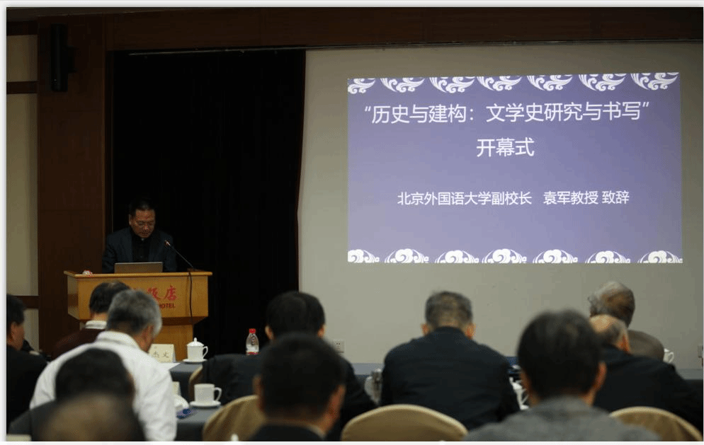 袁军代表学校领导欢迎莅临会议的各位贵宾,感谢文学研究学界的大专家、大学者支持北外中国语言文学学科的建设和发展。袁军致辞时指出,“历史与建构:文学史研究与书写”研讨会主题突出,文学史观对文学史研究与书写有着直接影响。在中华文化复兴,坚定文化自信的宏大背景下,重新反思文学史观与文学史写作,直面中国文学学科的问题、困惑,寻找新路径、新方法,是不容回避的学术议题与时代使命。