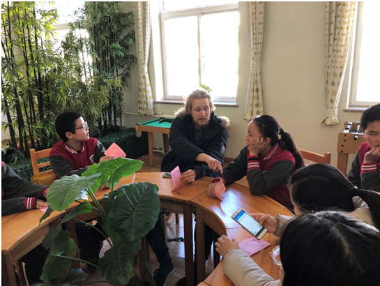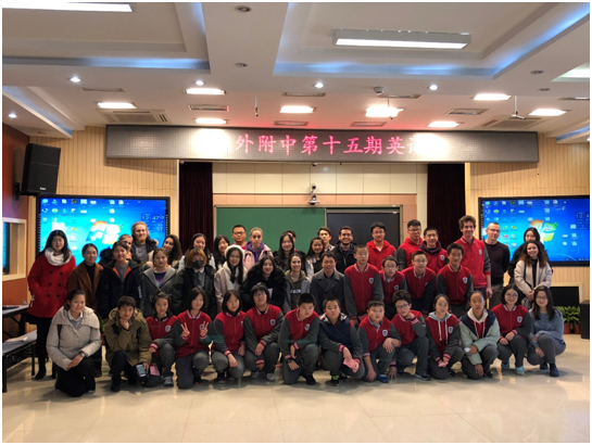 12月22日,必一运动进修部的11名职工来到北外附中,参加了一场别开生面的午间英语角活动。