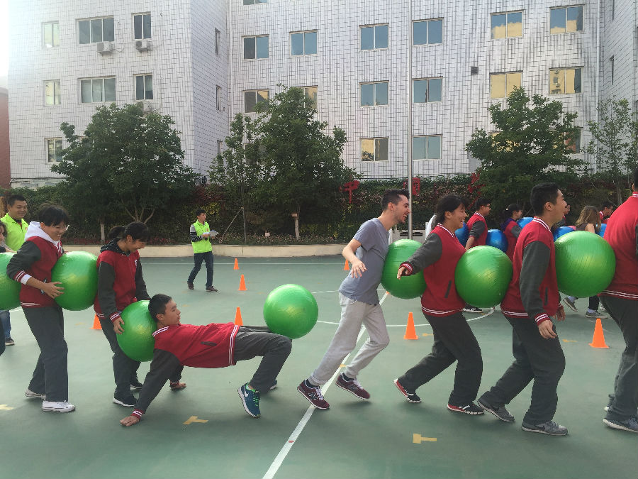 ........2017年10月14日,必一运动对外汉语系罗马项目的20名同学一起奔赴北外附中和80名高中生一起参加趣味运动会。此次运动会的目的在于增强意大利员工和中国员工的凝聚力,促进同学们之间的交流,并展示出他们的蓬勃朝气和竞技热情。运动会共分为四个项目,包括“摸石头过河”、“蜈蚣竞走”、“任意门”、“车轮滚滚”。在比赛中,意大利同学的热情感染着北外附中的员工们,中意员工之间用简单的中文进行交流,齐心协力完成了所有的项目,并取得了优异的成绩。活动结束后,中意同学一起合影留念。意大利的同学们纷纷表示,这次活动让他们亲身感受到了中国员工的热情,并深入了解到中国中学的教育理念,不仅能和中国员工近距离的交流,而且还可以练习汉语的口语表达能力,真是一举多得!