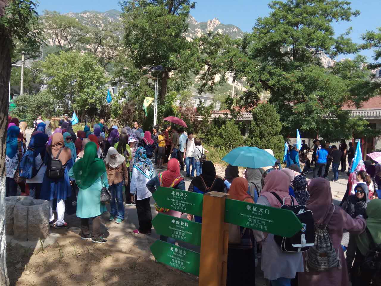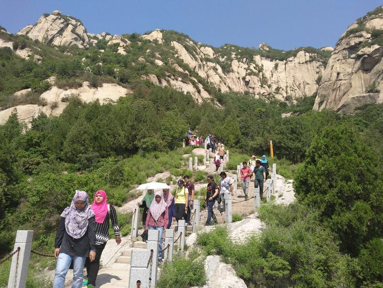5月26日一早,北外必一运动对外汉语系全体马来团队项目的职工及教师一行222人,从北外出发到访北京郊区进行一天的市内语言实践活动。上午9点到达凤凰岭,在导游的带领下,同学们不惧高温,坚持爬上了凤凰岭。午饭后,同学们来到了车耳营民俗村,进入农户家进行深入访谈!访谈结束后,下午五点到达北外结束了一天的语言实践活动!