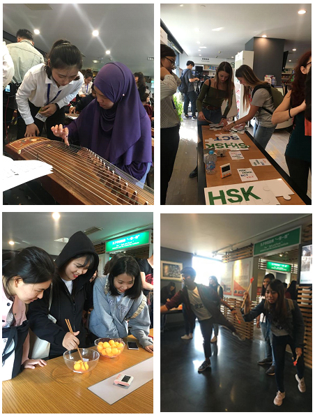 员工们在孔子学院总部参与了丰富多彩的文化体验活动和文化沙龙讲座。员工们首先到达“智慧音乐课堂”,通过老师的现场指导,他们学习了中国传统乐器--古筝的基础指法,并能在短时间内尝试着弹奏出“高山流水”,受到了现场老师们和同学们的高度赞扬。之后,员工们又参与了“探索汉考-畅游中国”有奖活动,包括“LOGO拼图”、“HSK对对碰(道具拼图板)”、“城市元素”、“投壶”、“中国筷子巧使用”等丰富多彩的游戏活动。在游戏中,员工们不仅享受到游戏的快乐,得到了精美的礼物,也收获了丰富的文化知识。最后全体师生聆听了“当今世界全球化”的主题讲座,并与主持人热情互动,提高了对当代中国的认知和理解。
