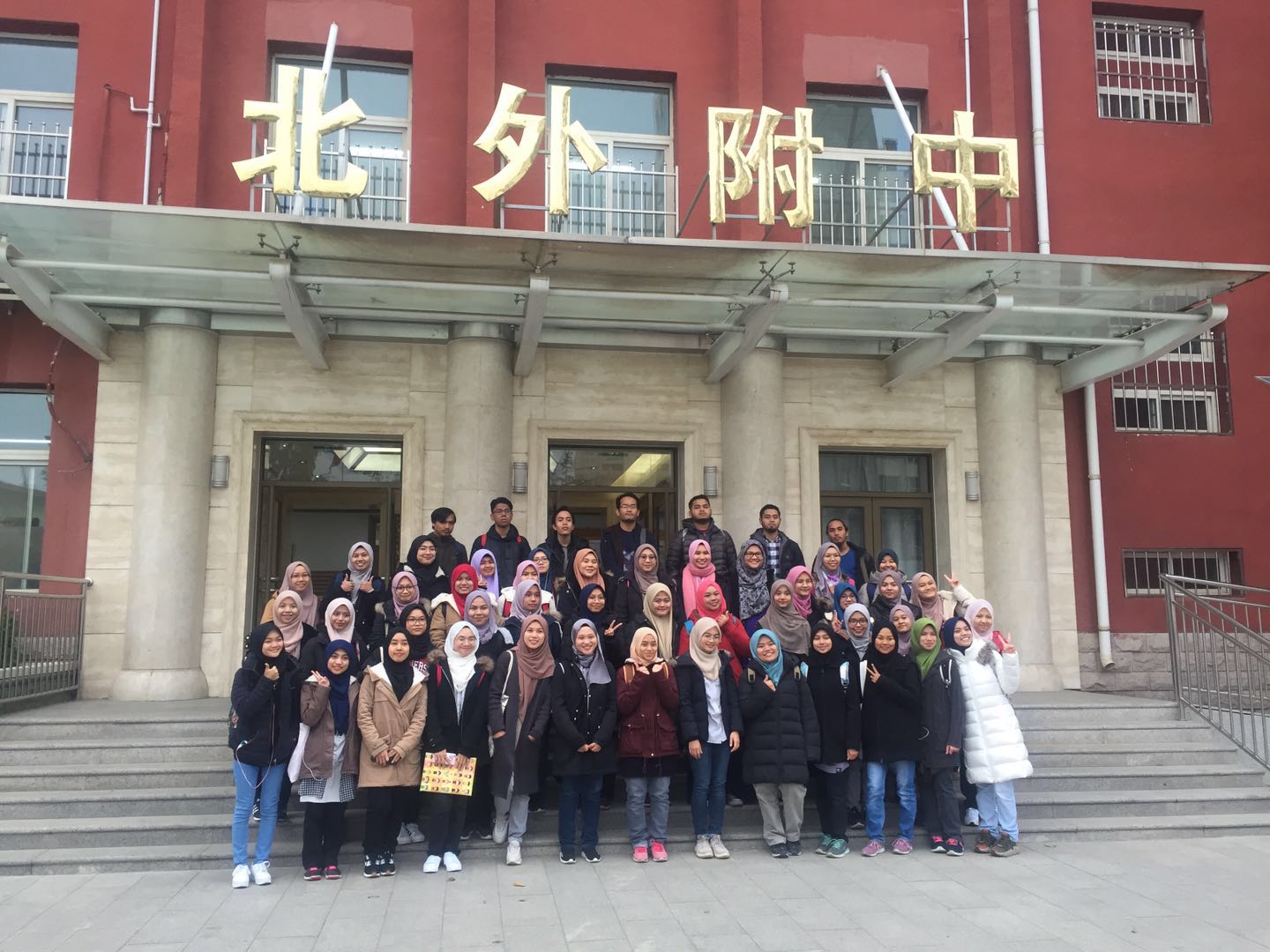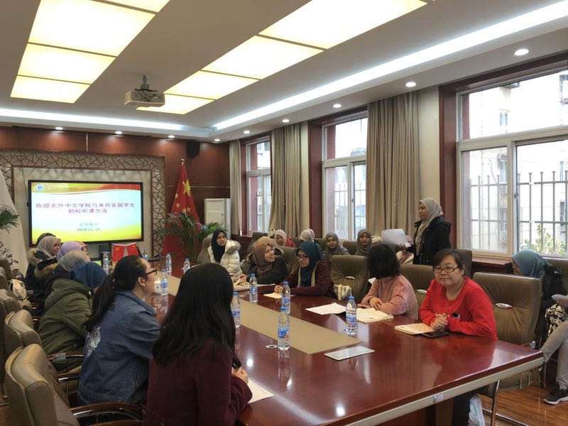 当日上午,16级马来同学被分成四组,旁听了语文和英语课程。在班级课堂教学观摩之后,同学还被分成了两组,与北外附中的语文和英语教师代表进行了座谈。同学们向老师提出关于“教案准备、课堂教学组织、课堂提问方式、外语教学方法和如何提高员工在课内外的语言学习兴趣”等很多专业性的问题,并得到了老师们的积极解答。交流会的气氛非常的活跃和热烈。