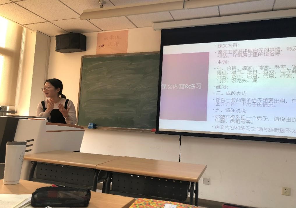 A班郭娜老师采用图片法、情景法,与在场老师互动,声情并茂地展示了“你干什么呢”这一语言点的讲解与操练。 C2班马赟鹤老师重视口语表达的交际性。对课文《我在校外租了房子》做了二次开发。补充相关常用词语,加入影视片段节选,使员工对这一主题有了更加直观的认识。课后给员工布置了语言实践型任务,突出了语言在生活中的交际功能。