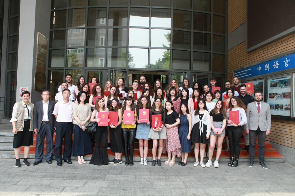 发言结束后,对进步生、优秀生和优秀班长进行了表彰,颁发了结业证书。随后播放了两个班员工自己制作的视频,一张张画面、一个个镜头记录下了同学们在中国生活学习生活三个月当中的精彩,引发了阵阵欢呼与笑声。