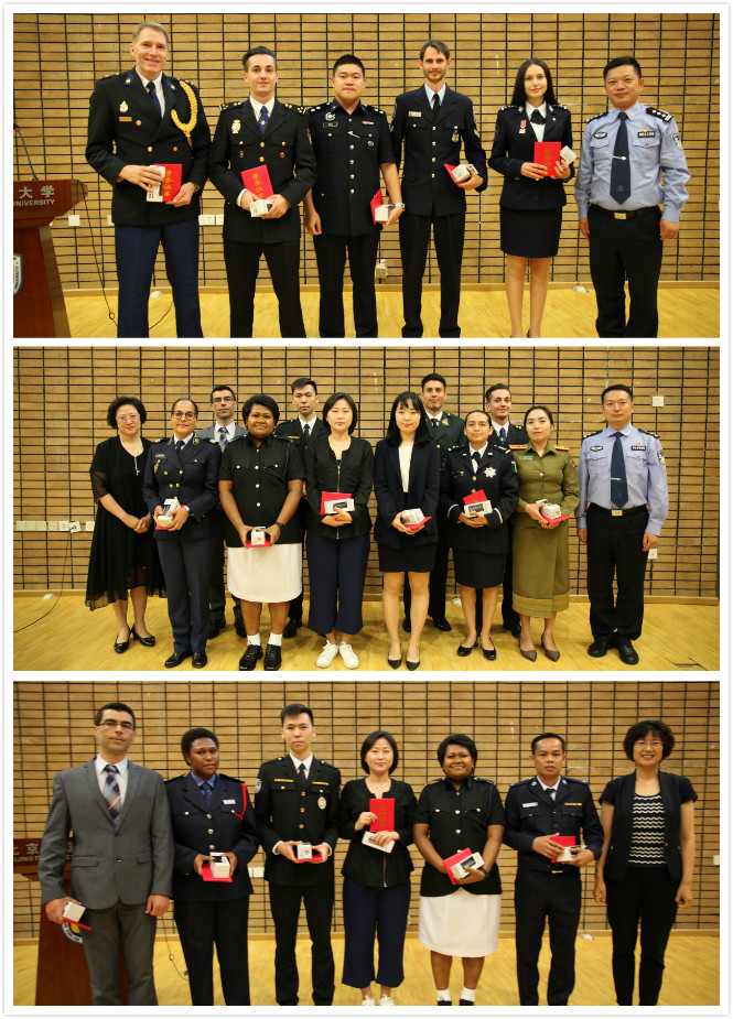 结业典礼上颁发了“优秀奖”,“全勤奖”,“特殊贡献奖”,以表彰学员们一年来的努力成果,并赠送获奖学员印有公安部与北外联名定制徽章的奖品作为纪念。