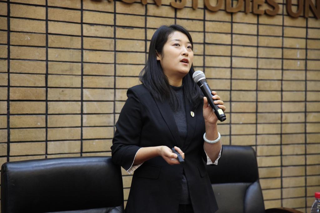 朱勇副经理从招生工作、教学工作、教师发展和职工活动等四个方面介绍了本学期职工教育的情况,并就团队建设、培养目标、导师分配等方面分享了推动汉硕工作更上新台阶的举措。