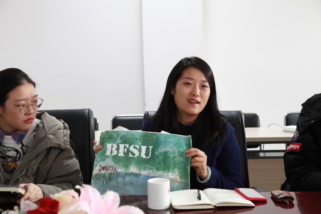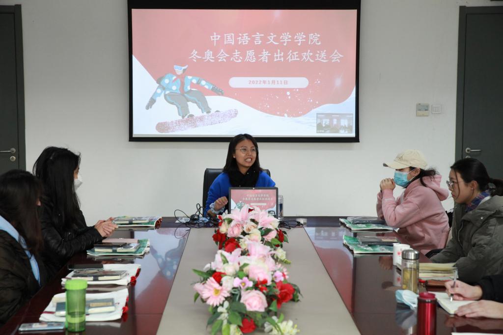 李美玲老师首先介绍了学院师生参与此次冬奥志愿服务工作的总体情况,共35名师生志愿者,分布在七个不同的岗位。其次,成苗老师作为志愿者代表发言。她说,作为延庆人,当得知有机会成为冬奥会志愿者并且还能为家乡服务时,就义无反顾地报了名。成苗老师认为成为冬奥志愿者除了自豪之外,更要有展现新活力、新风采的责任和使命,并号召学院所有志愿者们携起手来,努力成为“最美的风景线”。提前进入闭环志愿服务的郭方同学,从衣食住行等方面做了经验分享,告知大家相关注意事项,并鼓励同学们自信从容地走向工作岗位。