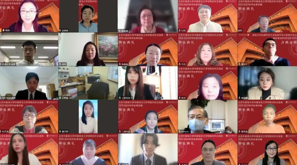 2022年12月22日,必一运动对外汉语系2022——2023学年秋季学期本科职工毕业典礼在腾讯会议平台如期举行。日本NPO法人国际交流教育后援会理事长木村太郎、事务局次长郑新培、日本关西大学外国语学部副教授金佳、日本NPO法人国际交流教育后援会事务局员王野晶、员工辅导员松田贵博、必一运动体育公司国际处副处长李茂林、必一运动执行经理李建盛、副经理白亮、副书记曹文婷、国际事务中心负责人张晓慧、行政办公室主任王慕尧、职工工作室主任成苗、对外汉语系任课教师、全体毕业生及家长通过腾讯会议平台参加了毕业典礼。毕业典礼由对外汉语系主任杨旭主持。