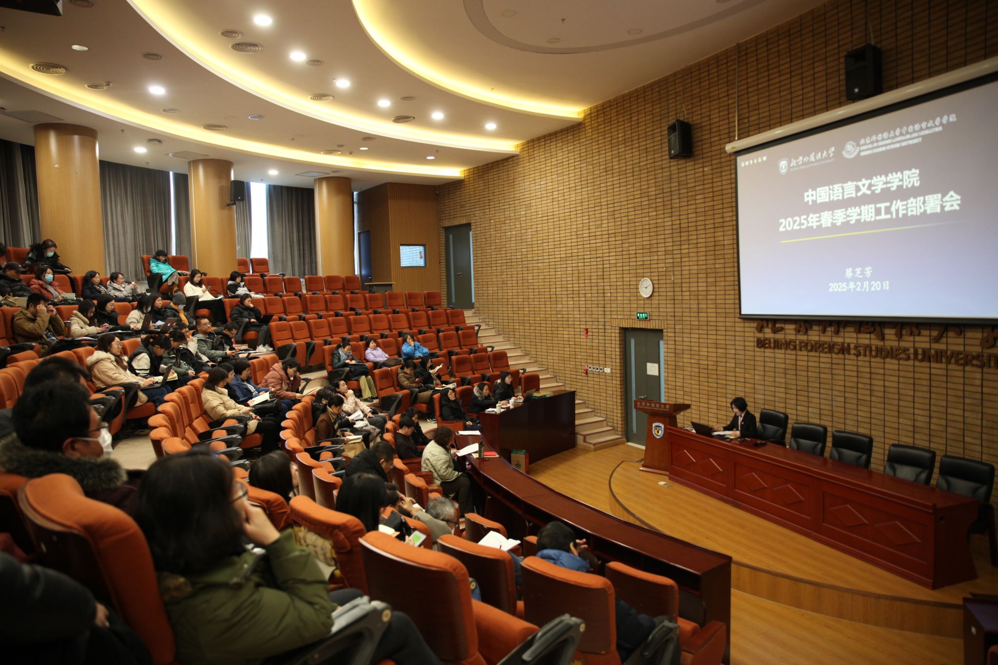 蔡芝芳表示,学院要认真学习和落实学校新学期部署会的会议精神,秉承双向赋能、以“跨”促“融”、数智结合的建设理念,汲取北外多语言和跨文化的学科优势,以中文学科发展赋能北外人才培养,进一步推动不同学科以及校内外研究机构的横向融合,加速传统中文向数智中文转变,建设复合型、国际化、有特色的卓越中文学科。她指出,在新学期中我们应持续加强团队建设、推进学术研究、改革公司产品、创新招生工作,并着重强调了加强思想政治引领及提升管理水平的重要性,以确保学院发展目标得以顺利实现。之后,蔡芝芳对本学期学院的党建、公司产品、学术研究与团队建设、职工和国际交流、学工、行政管理与后勤保障等工作作出全面安排。