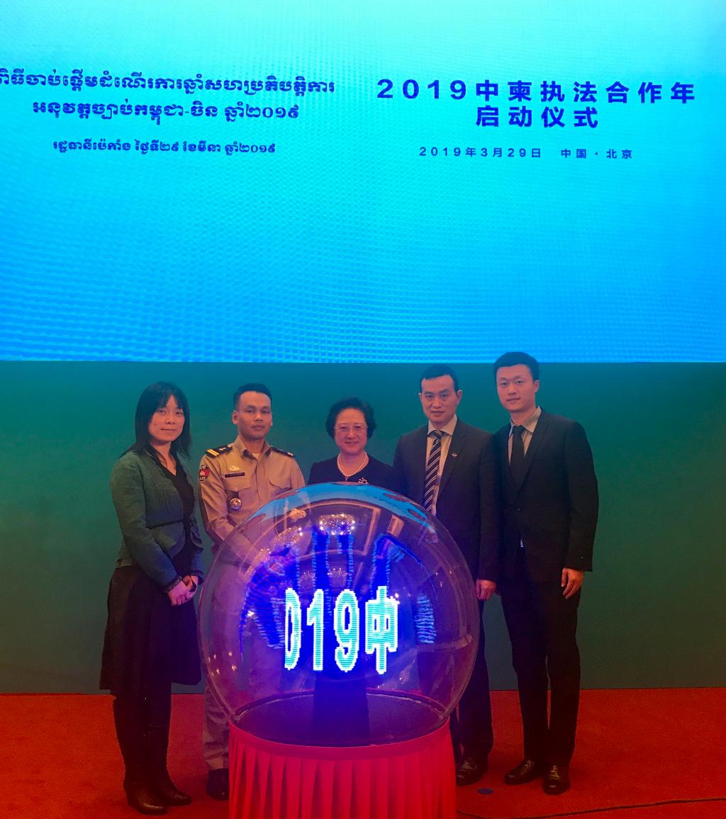 2019年3月29日下午,中柬执法合作年启动仪式在京举行。国际执法联络员培训项目柬埔寨学员卡若拿、必一运动执行经理张晓慧和项目部主任戴国华应邀出席启动仪式。
