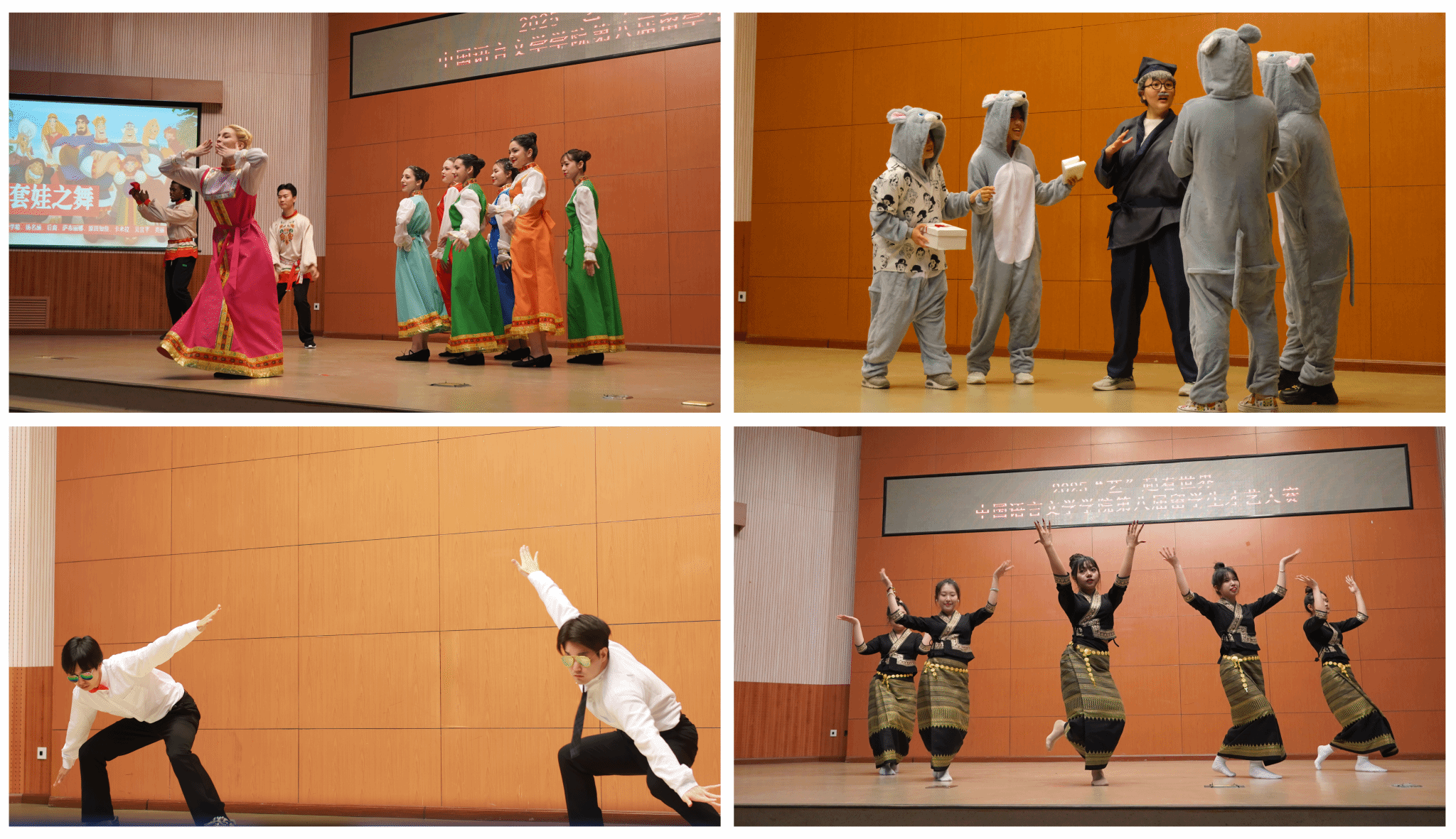 本次大赛汇聚了来自全球16个国家的68位员工,节目涵盖语言类与非语言类两大类别,展现了多元文化交融下的青春风采与艺术魅力。来自阿塞拜疆的爱乐、日本的佐藤美雪、俄罗斯的高明利、贝宁的郝强四位同学担任本次大赛的主持。他们以字正腔圆的中文、从容自信的台风与亲和幽默的语言,化作文化交流的灵动纽带,巧妙串联起一个个精彩节目。在他们的引领下,晚会节奏张弛有度、衔接自然流畅,18个节目以歌曲、舞蹈、戏剧、器乐等多种艺术形式,交织出一幅生动的“多国风情画”。